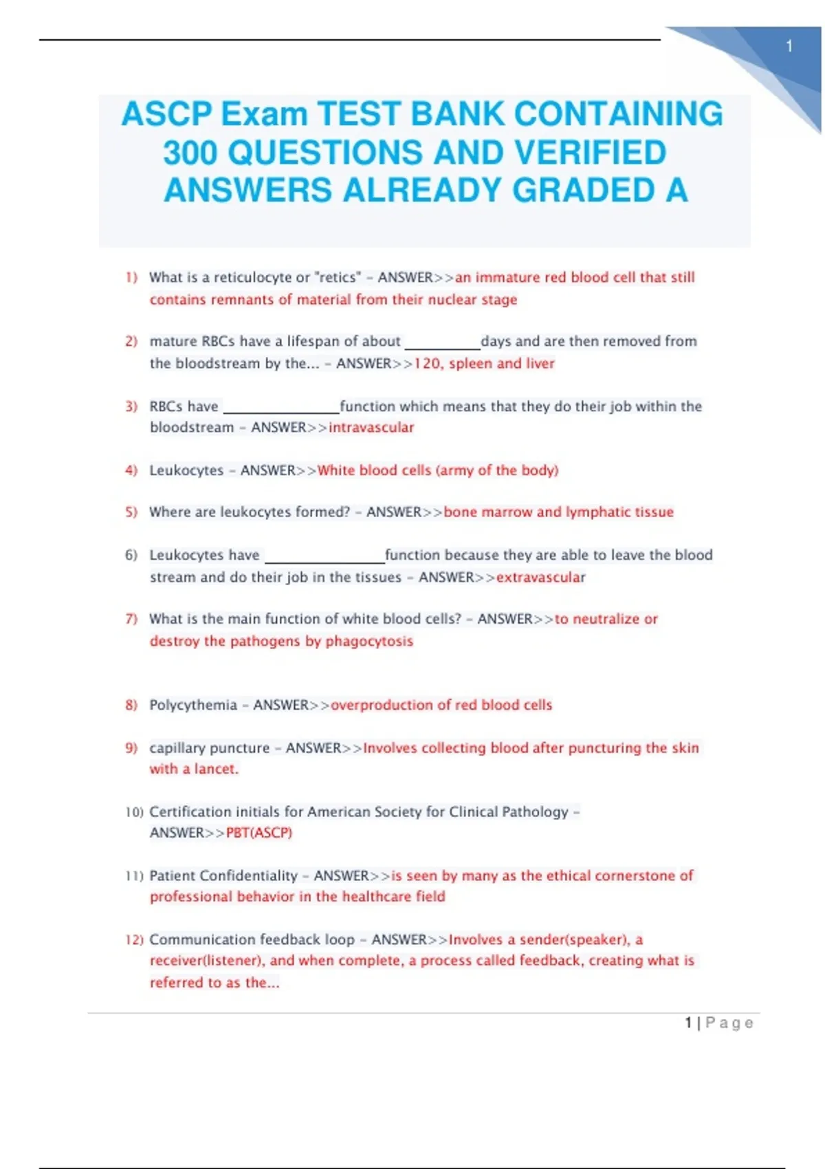 ASCP Exam TEST BANK CONTAINING