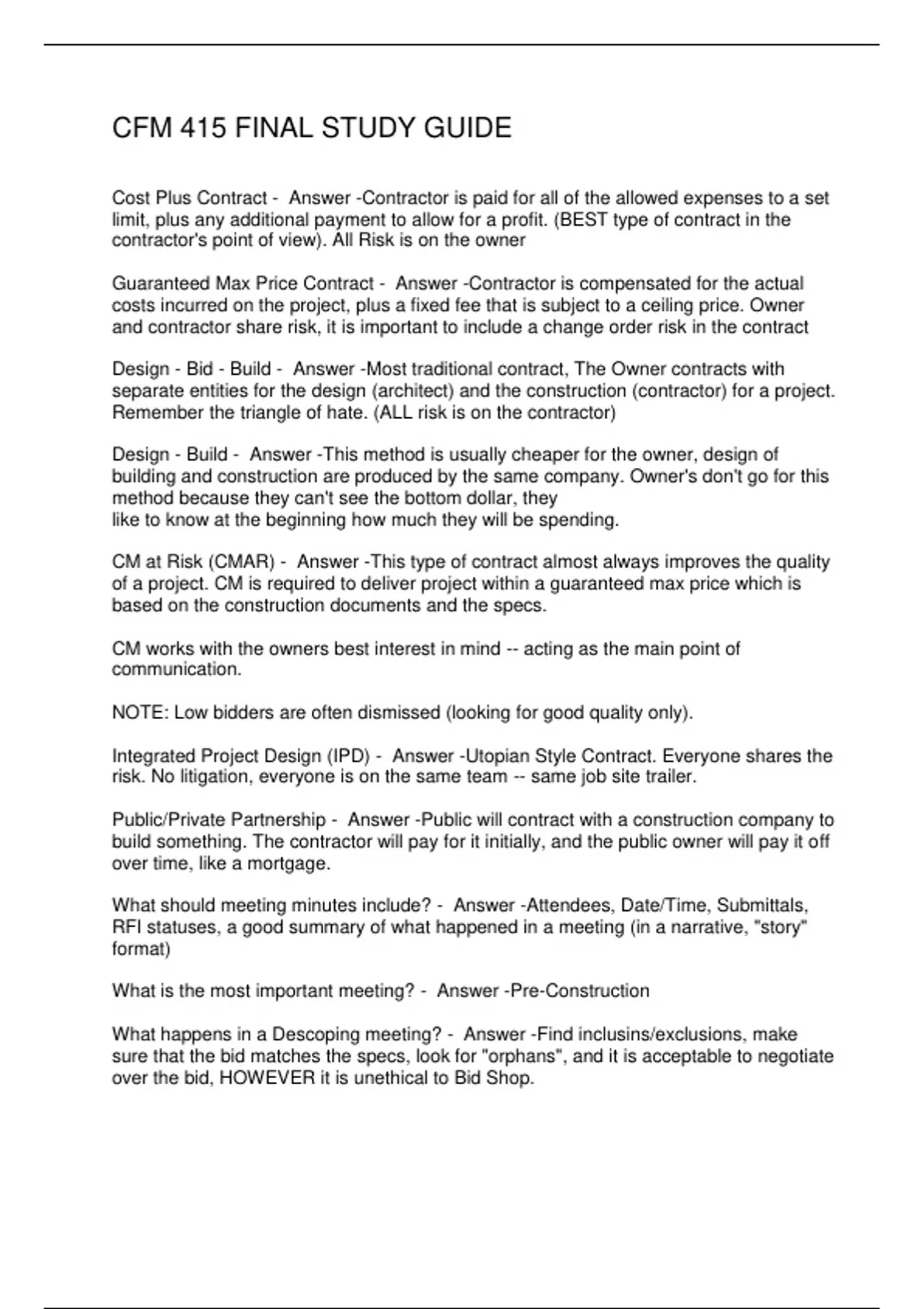 Guaranteed Max Price Contract - Answer -Contractor is compensated for the actual