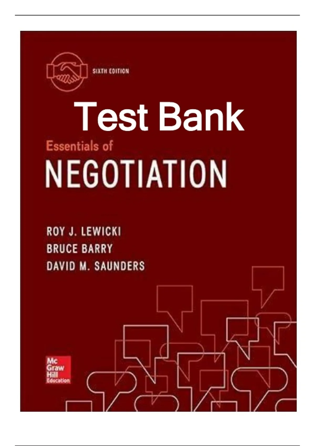 Access the complete test bank for Essentials of Negotiation, 6th Edition by Lewicki, Barry, and Saunders. Includes chapter-based questions, verified answers, and rationales to help students master negotiation strategies, conflict resolution, and effective decision-making for academic and professional success.
