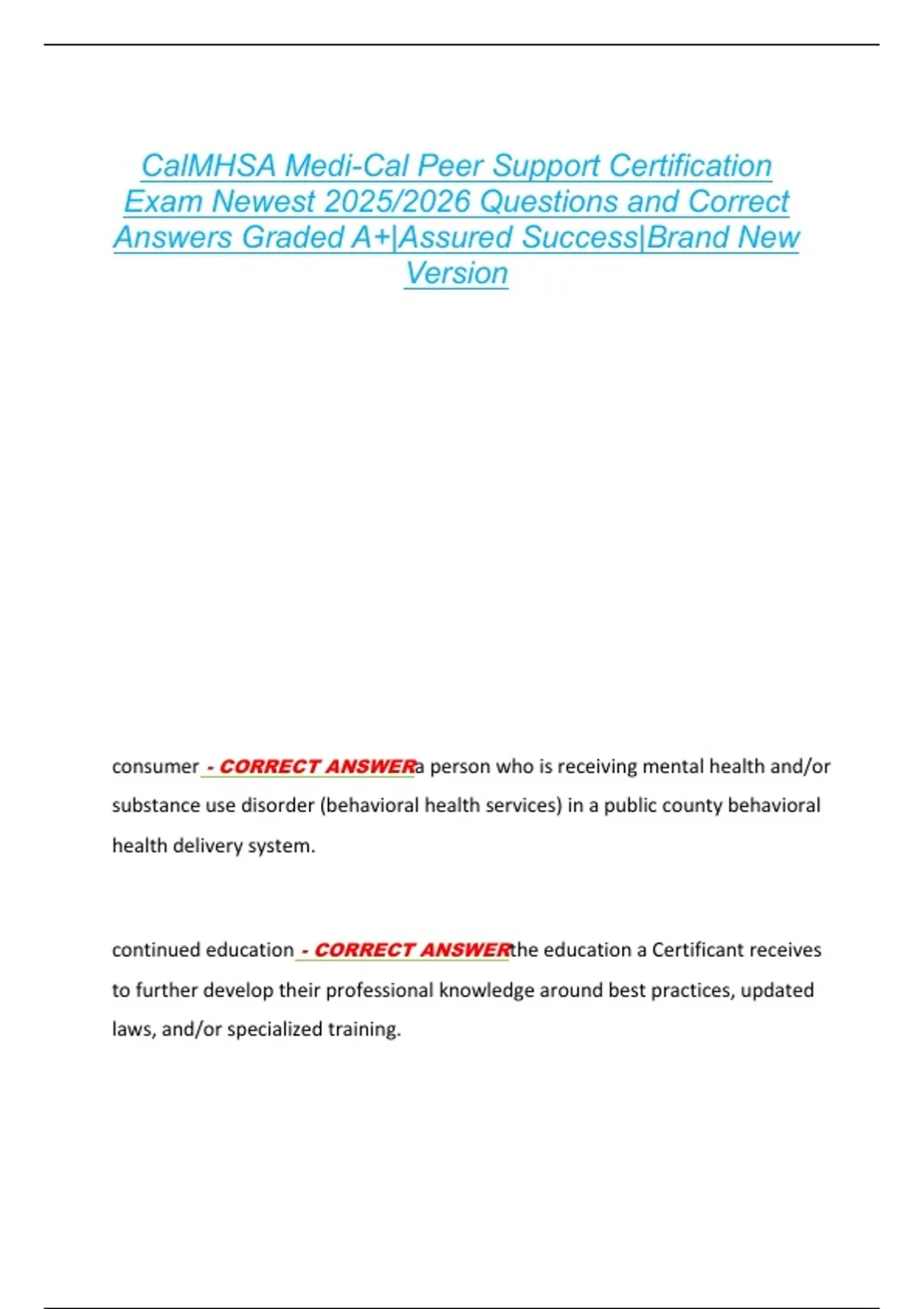 certication - CORRECT ANSWERindicated all requirements of a Medi-Cal Peer