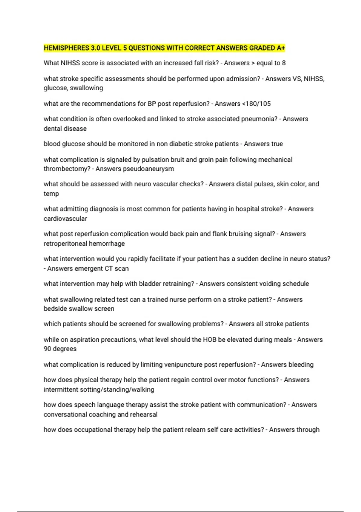 What NIHSS score is associated with an increased fall risk? - Answers > equal to 8