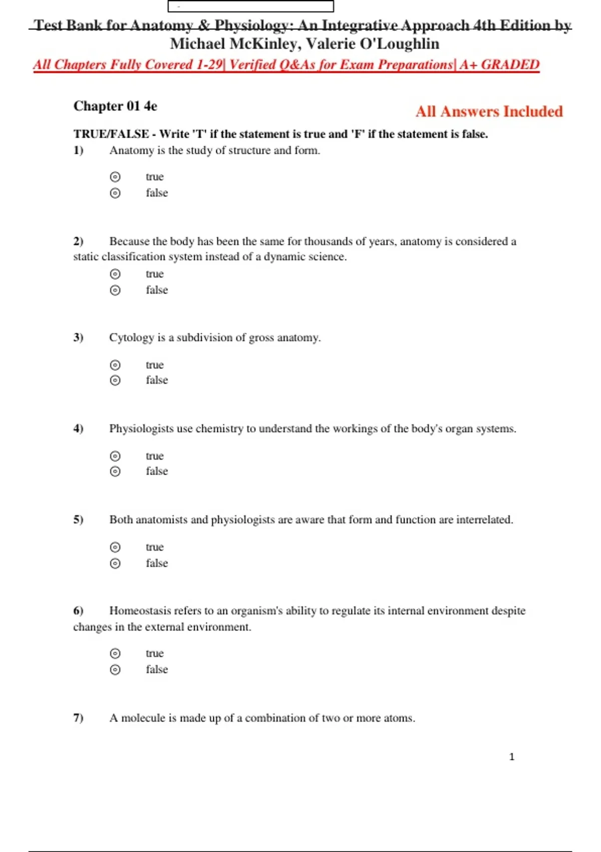 Test Bank for Anatomy & Physiology: An Integrative Approach