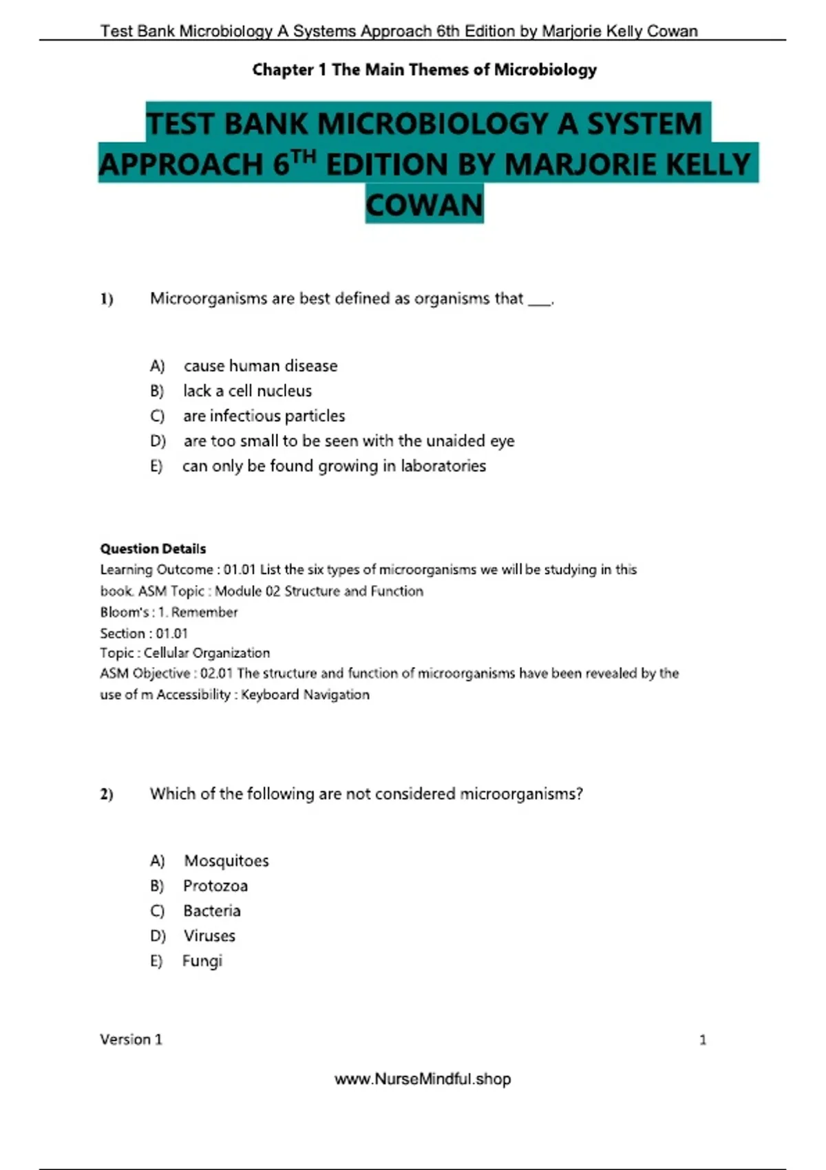 TEST BANK FOR MICROBIOLOGY, A SYSTEMS APPROACH, 6TH EDITION, MARJORIE KELLY COWAN, HEIDI SMITH |All chapters TEST BANK FOR MICROBIOLOGY, A SYSTEMS APPROACH, 6TH EDITION, MARJORIE KELLY COWAN, HEIDI SMITH |All chapters TEST BANK FOR MICROBIOLOGY, A SYSTEMS APPROACH, 6TH EDITION, MARJORIE KELLY COWAN, HEIDI SMITH |All chapters TEST BANK FOR MICROBIOLOGY, A SYSTEMS APPROACH, 6TH EDITION, MARJORIE KELLY COWAN, HEIDI SMITH |All chapters