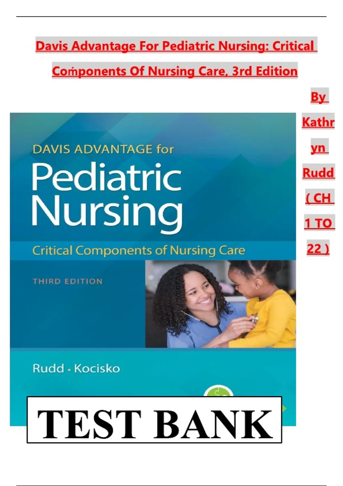 Davis Advantage Pediatric Nursing 3rd Edition | Kathryn Rudd | Critical Components of Nursing| CH 1- 22