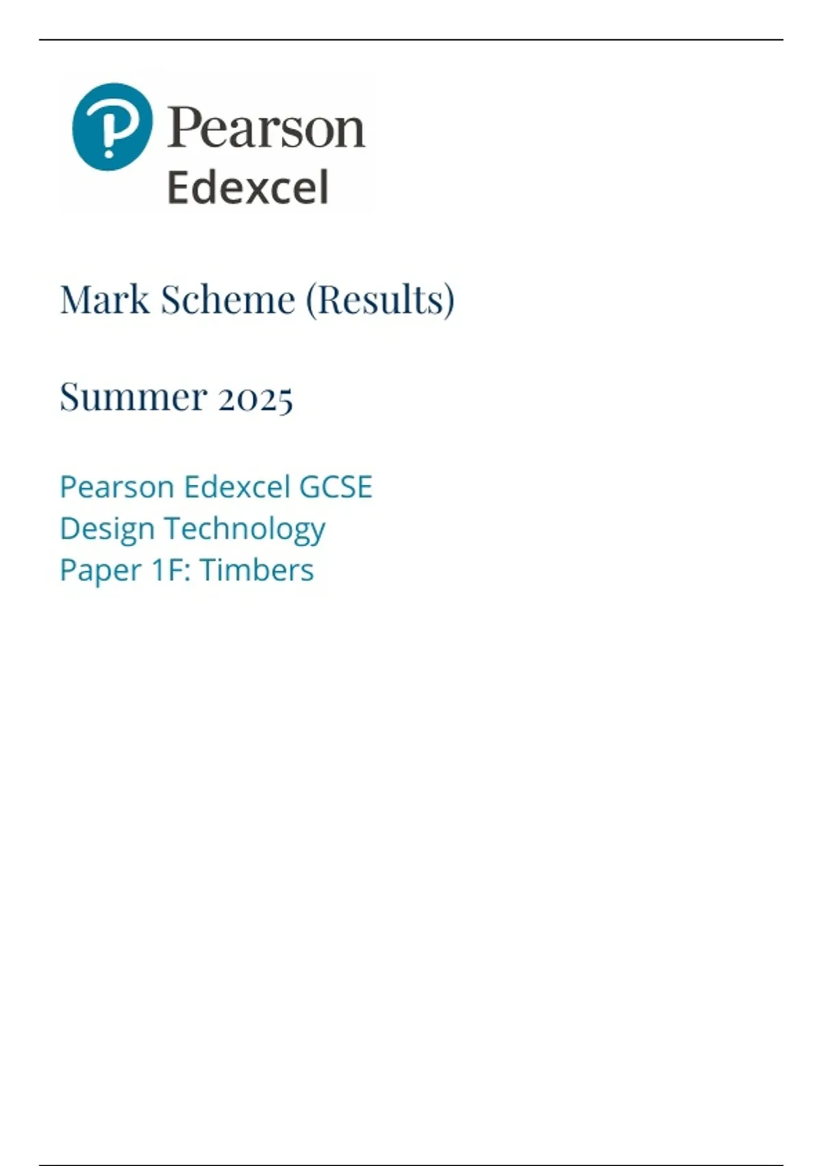 2025 PEARSON EDEXCEL GCSE Design and Technology PAPER 1 MARK SCHEME : Timbers (1DT0/1F