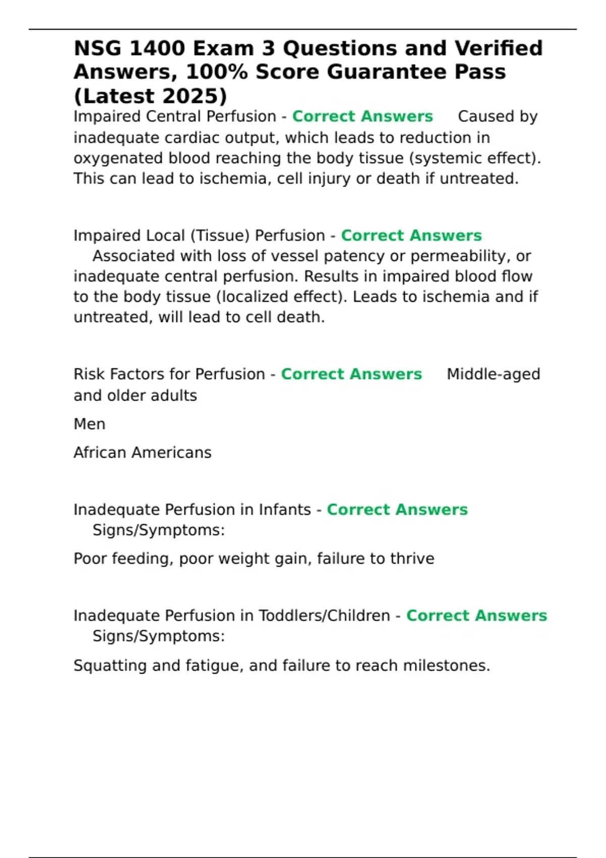 NSG 1400 Exam 3 Questions and Verified Answers, 100- Score Guarantee Pass (Latest 2025)