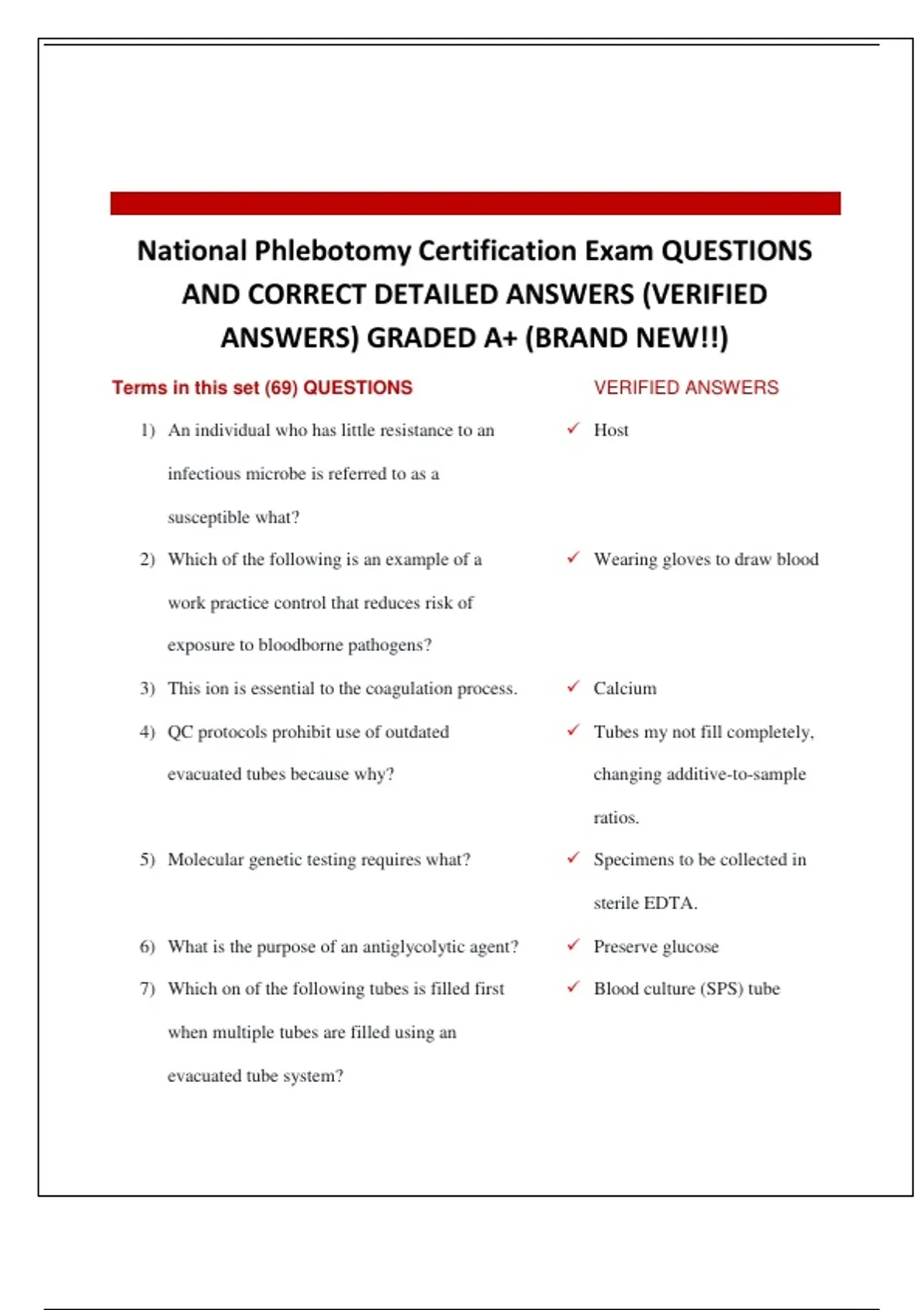 National Phlebotomy Certification Exam Questions (2025) Latest Already Graded A+