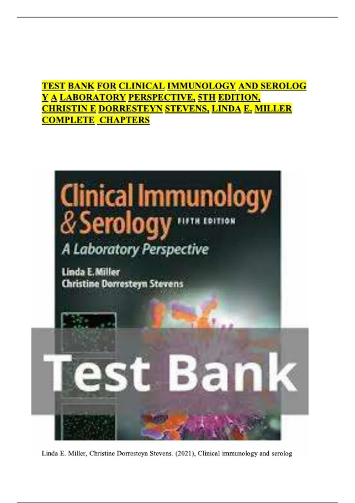 Test Bank for Clinical Immunology and Serology: A Laboratory Perspective, 5th Edition