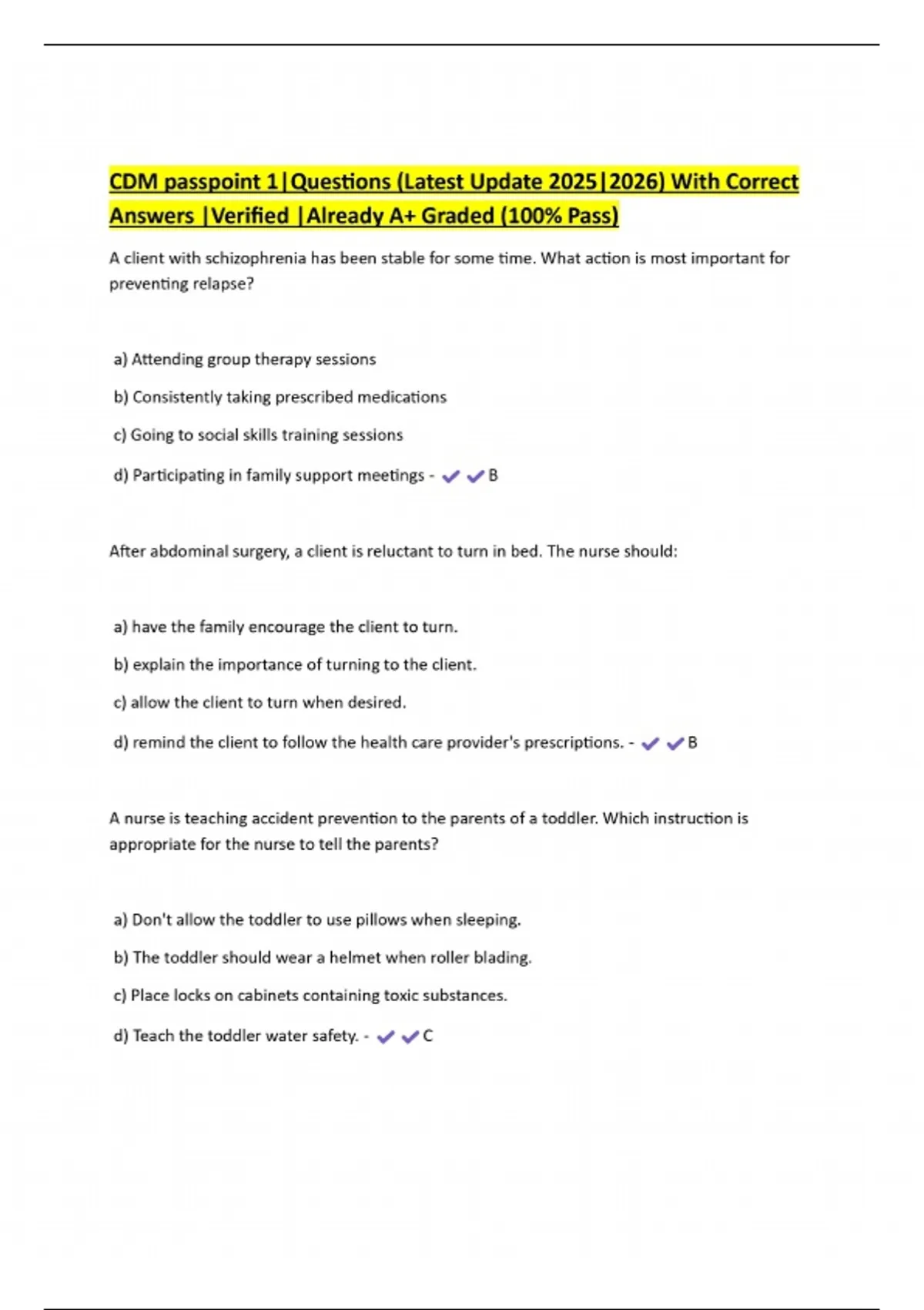 CDM passpoint 1|Questions (Latest Update 2025|2026) With Correct Answers |Verified |Already A+ Graded (100% Pass)