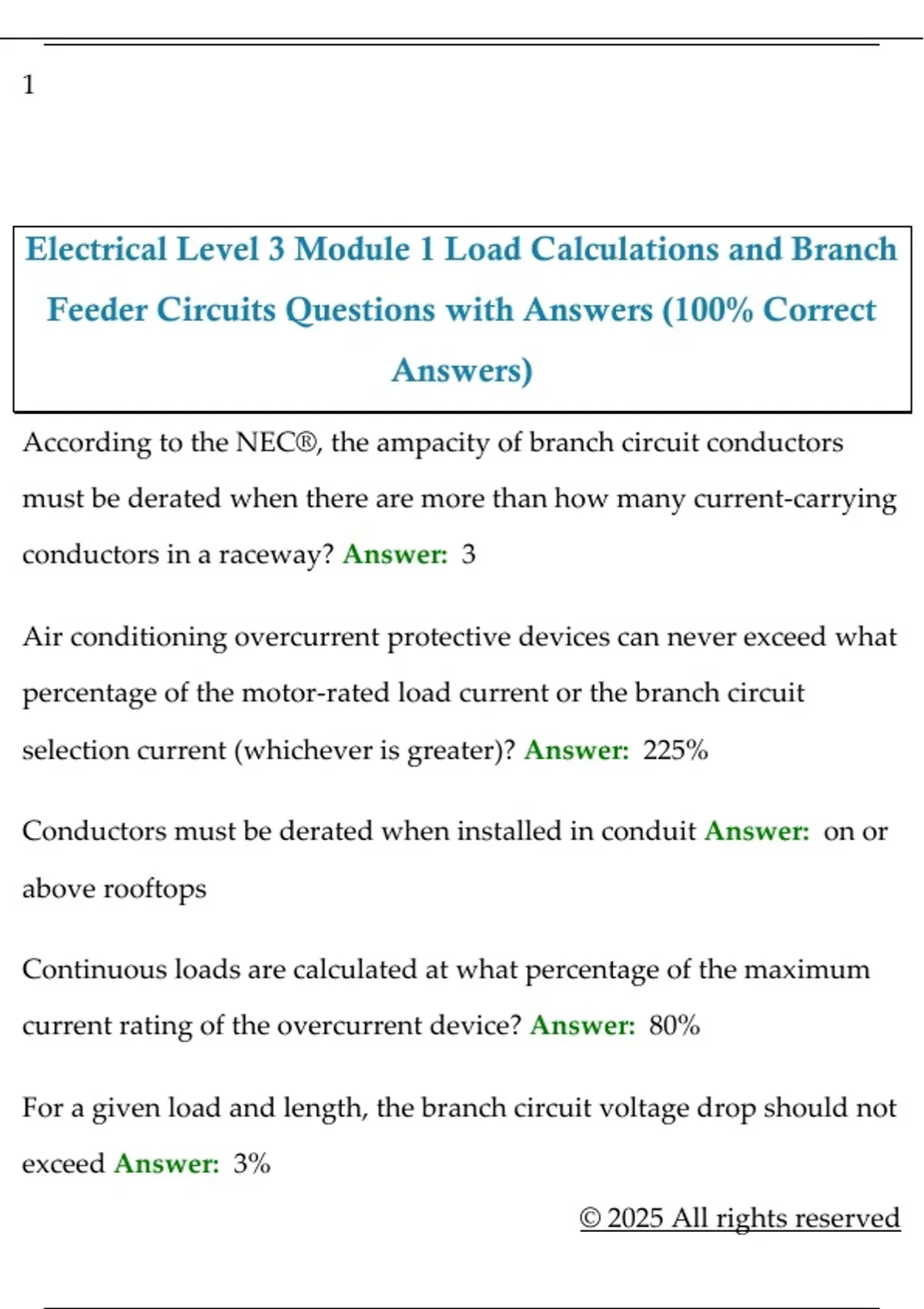 Electrical Level 3 Module 1 Load Calculations and Branch Feeder Circuits Questions with Answers (100% Correct Answers)