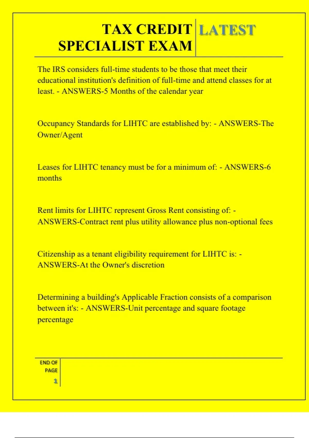 TAX CREDIT SPECIALIST EXAM QUESTIONS AND ANSWERS 2025