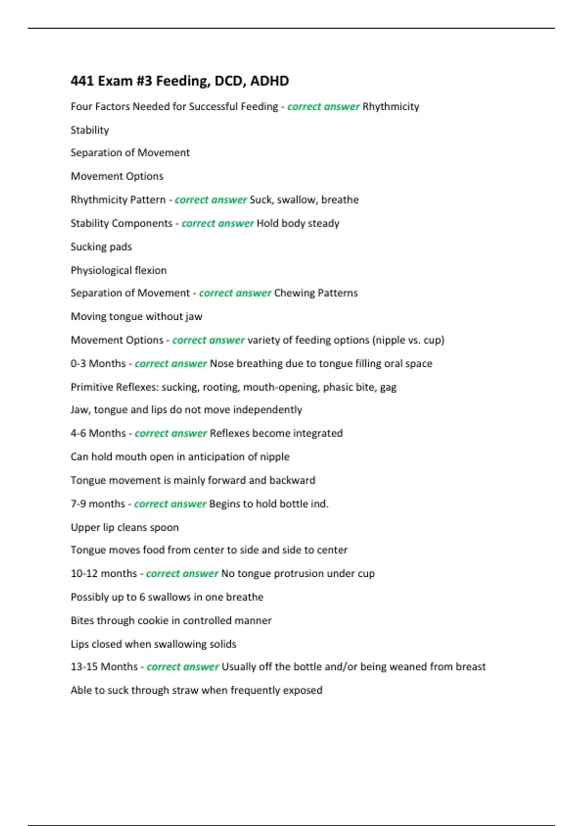 4-6 Months - correct answer Reflexes become integrated