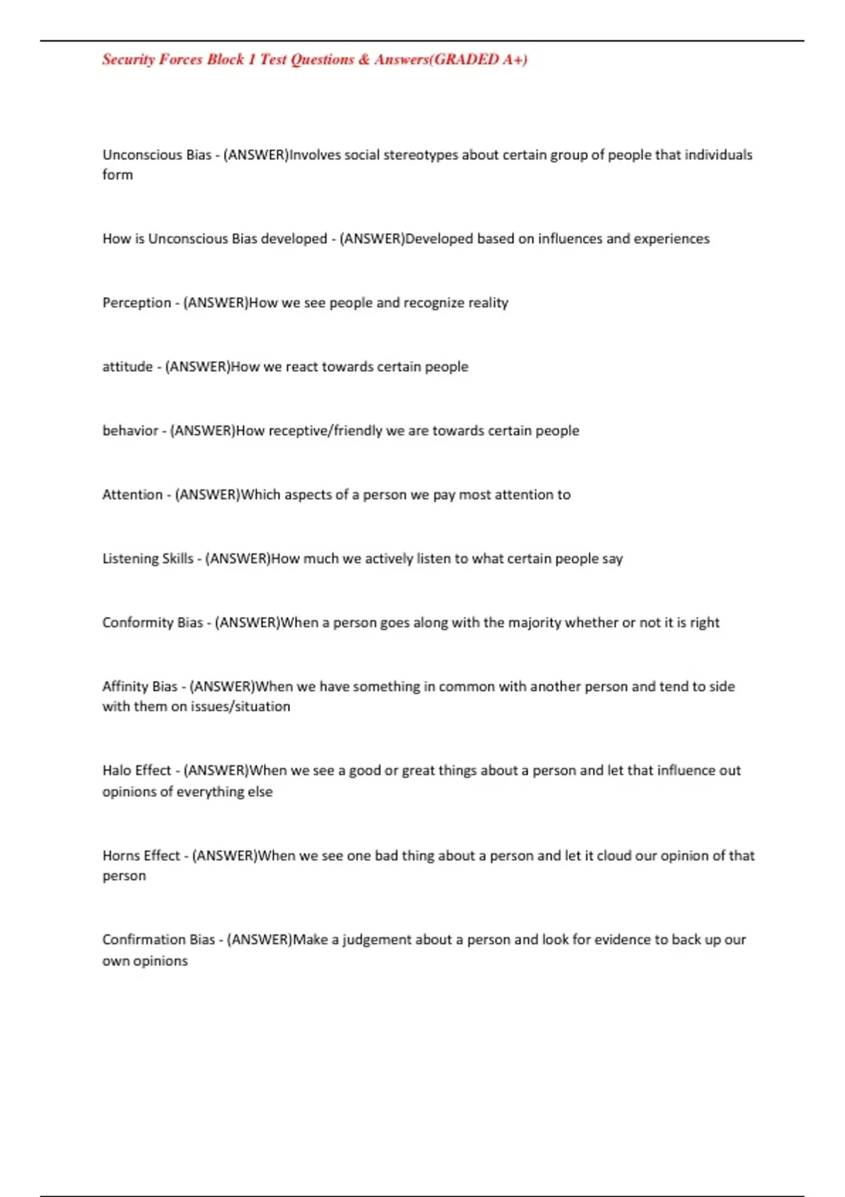 Security Forces Block 1 Test Questions & Answers(GRADED A+)