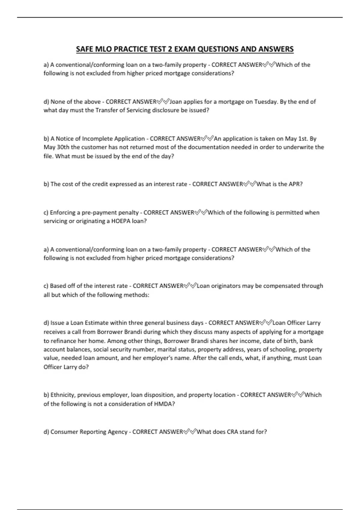 SAFE MLO PRACTICE TEST 2 EXAM QUESTIONS AND ANSWERS
