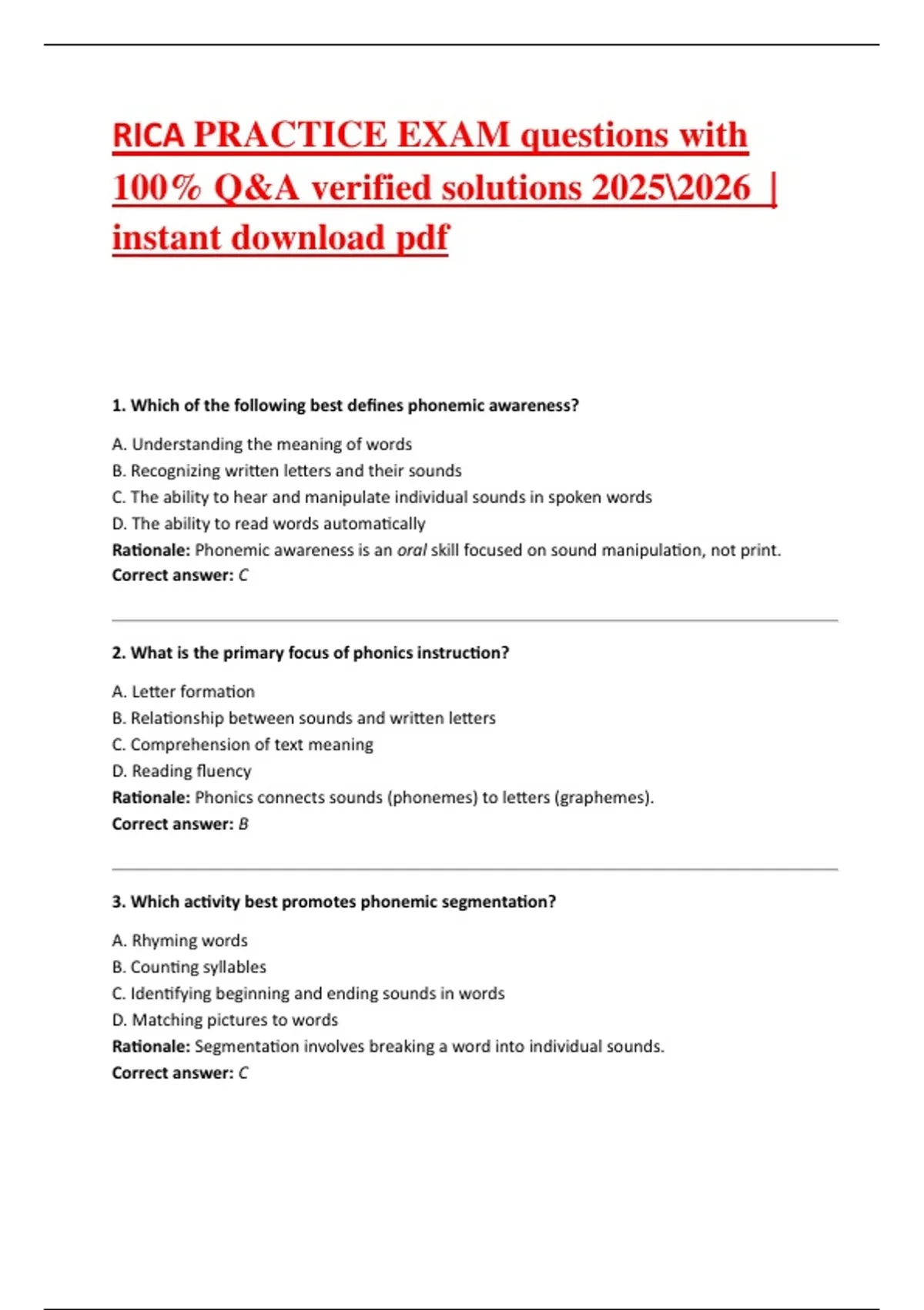 RICA PRACTICE EXAM questions with 100 RICA PRACTICE EXAM questions with 100