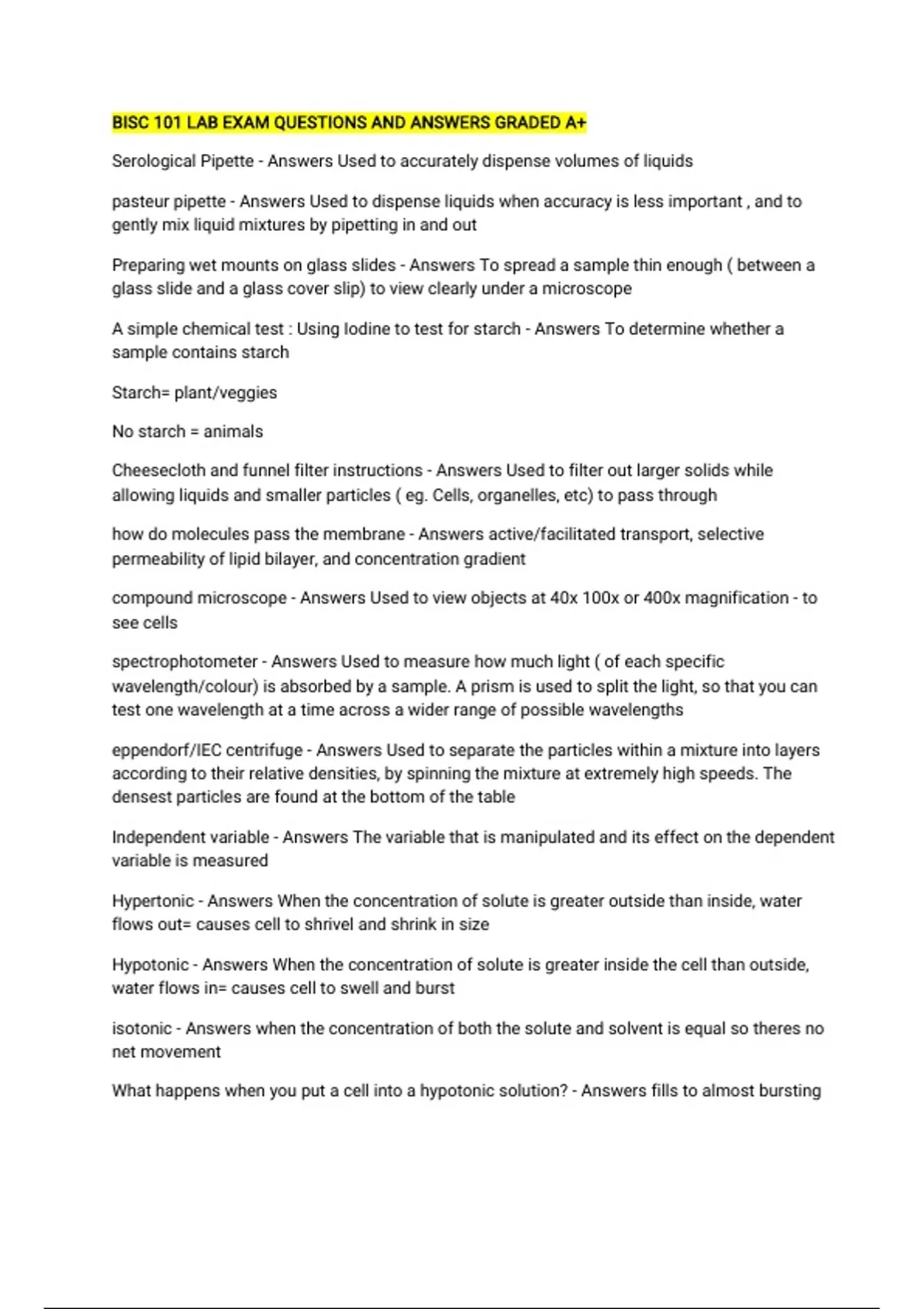 Serological Pipette - Answers Used to accurately dispense volumes of liquids