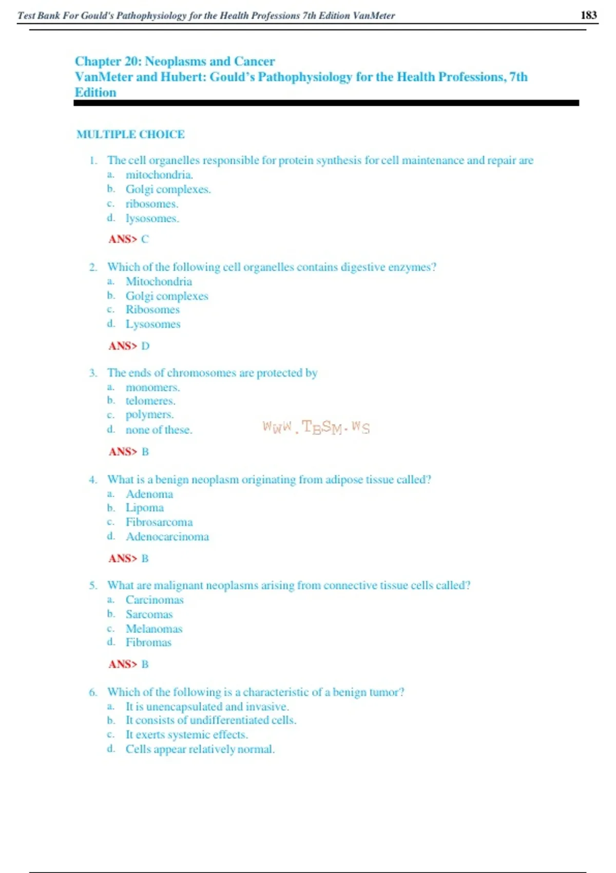 , Test Bank For Gould's Pathophysiology for the Health Professions 7th Edition VanMeter 185