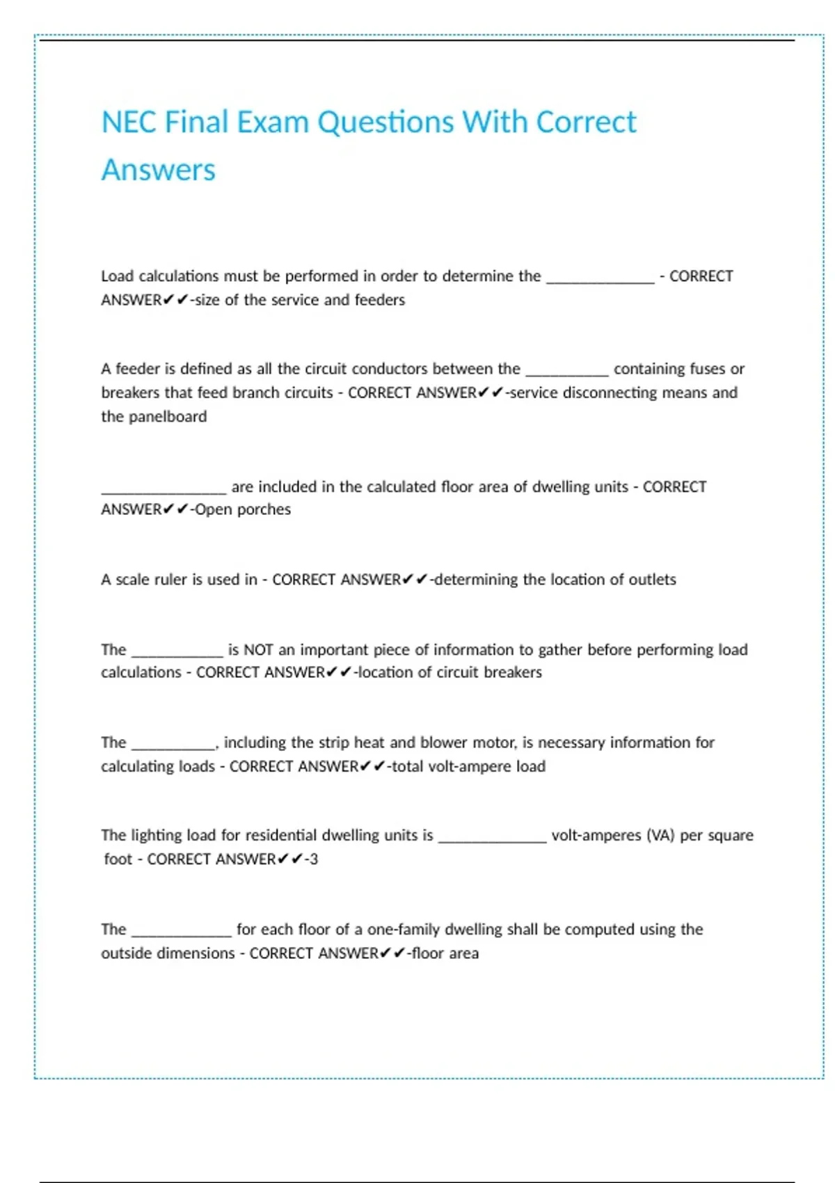 NEC Final Exam Questions With Correct