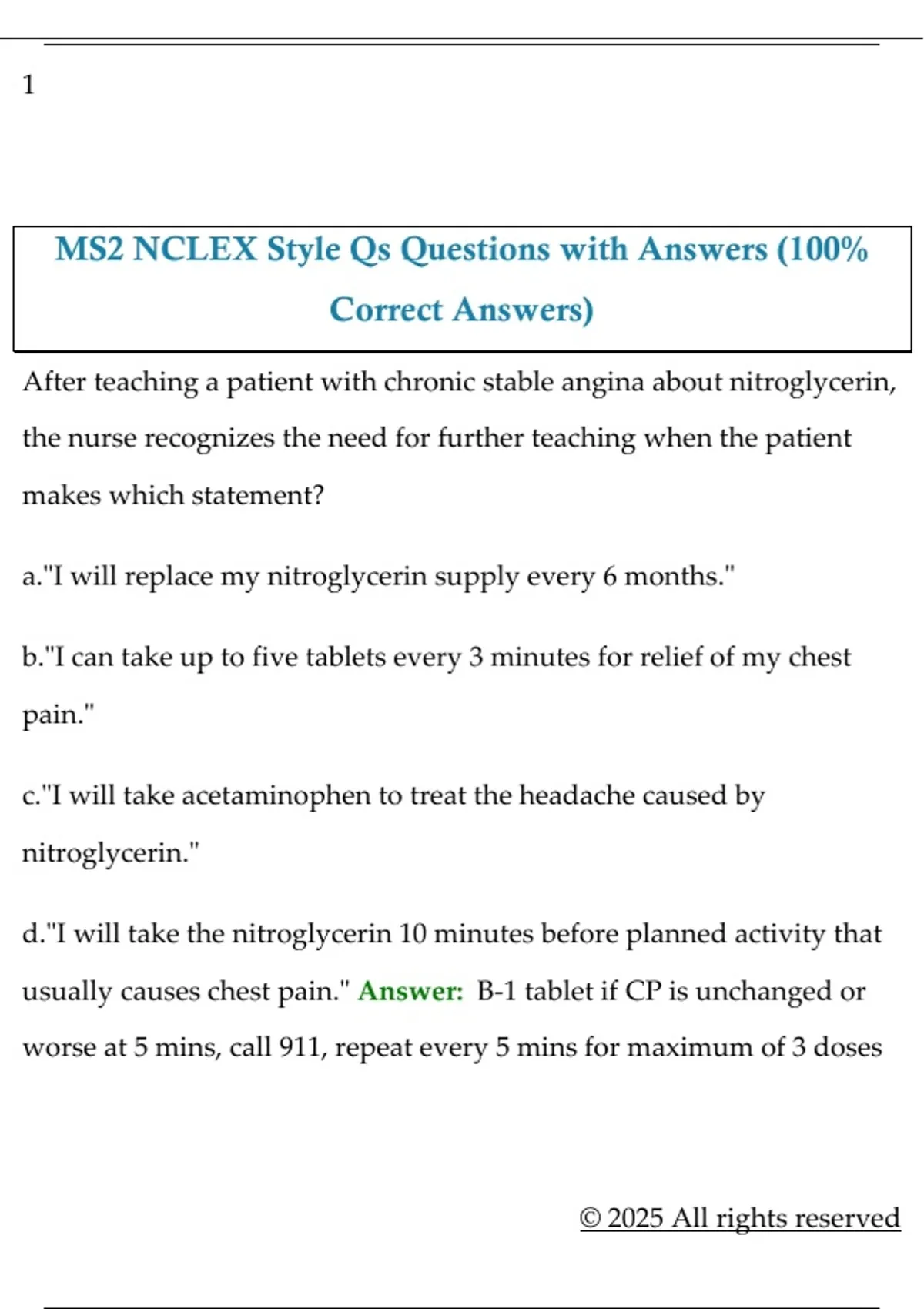 MS2 NCLEX Style Qs Questions with Answers (100%