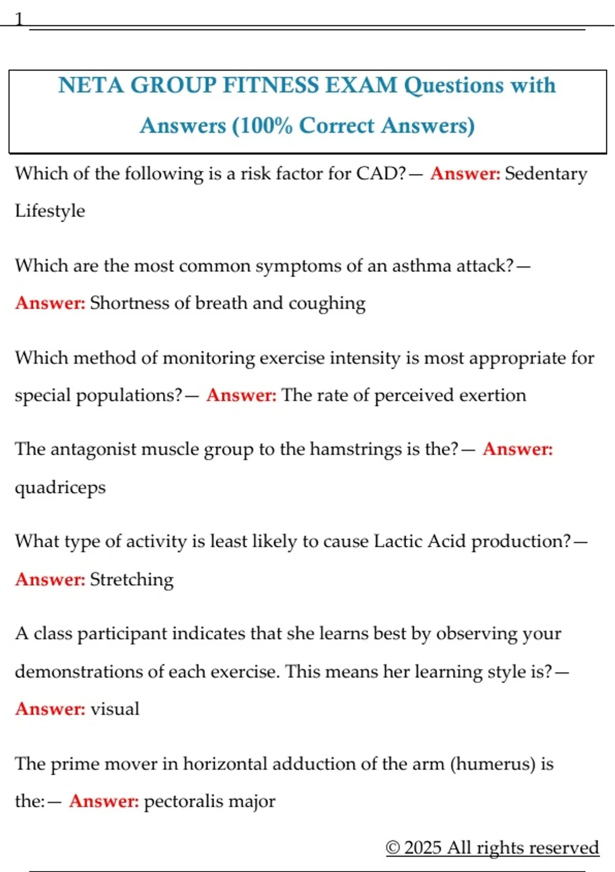 NETA GROUP FITNESS EXAM Questions with Answers (100% Correct Answers)