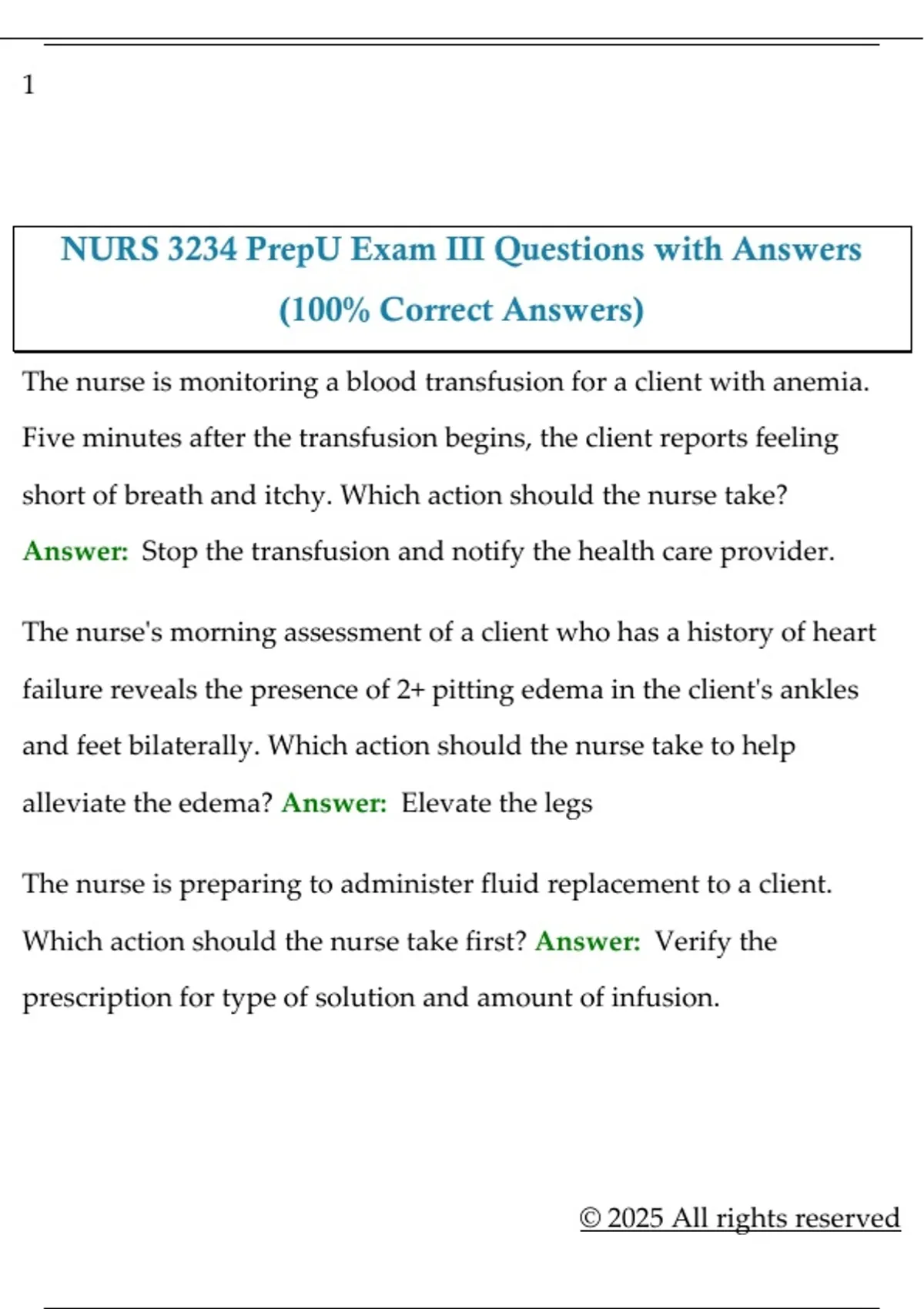 NURS 3234 PrepU Exam III Questions with Answers