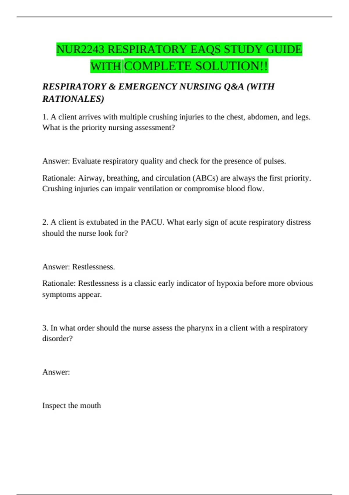 RESPIRATORY & EMERGENCY NURSING Q&A (WITH
