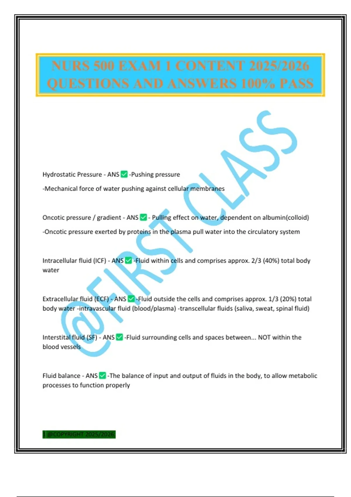 NURS 500 EXAM 1 CONTENT 2025/2026 QUESTIONS AND ANSWERS 100% PASS