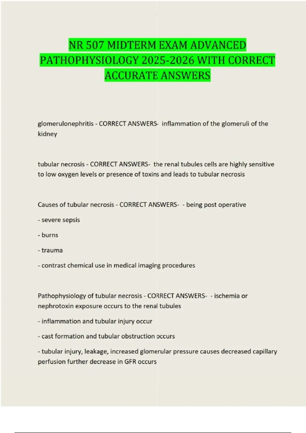 NR 507 MIDTERM EXAM ADVANCED PATHOPHYSIOLOGY WITH CORRECT ACCURATE ANSWERS