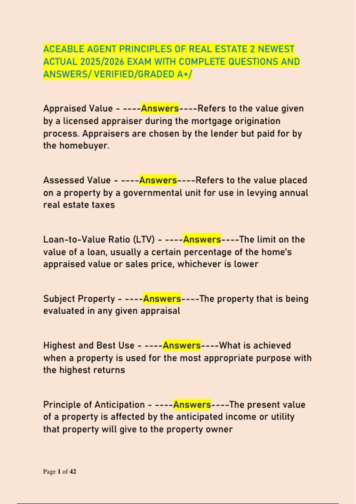 Highest and Best Use - ----Answers----What is achieved