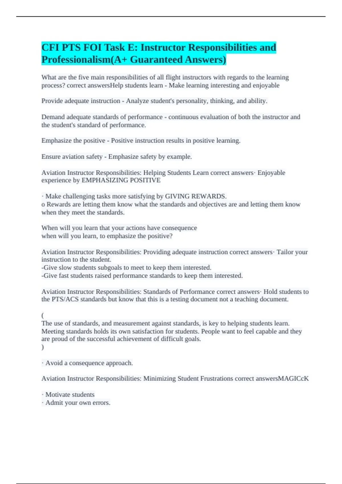 Aviation Instructor Responsibilities: Helping Students Learn correct answers· Enjoyable