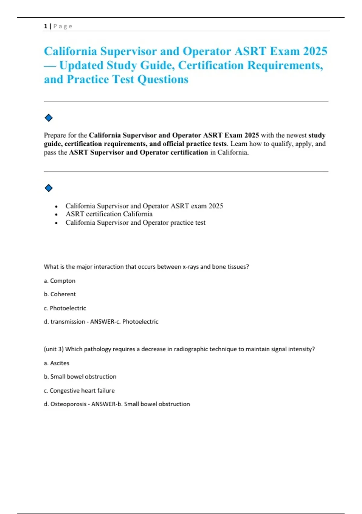 pass the ASRT Supervisor and Operator certification in California.