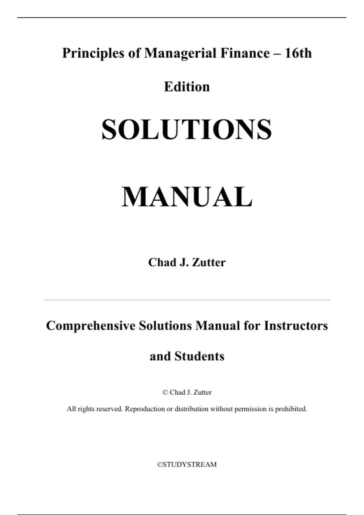 Solution for Principles of Managerial Finance 16th Edition by Chad J. Zutter