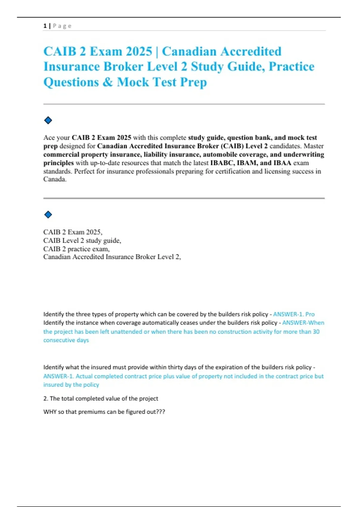 CAIB 2 Exam 2025 Canadian Accredited Insurance Broker Level 2 Study Guide, Practice Questions & Mock Test Prep