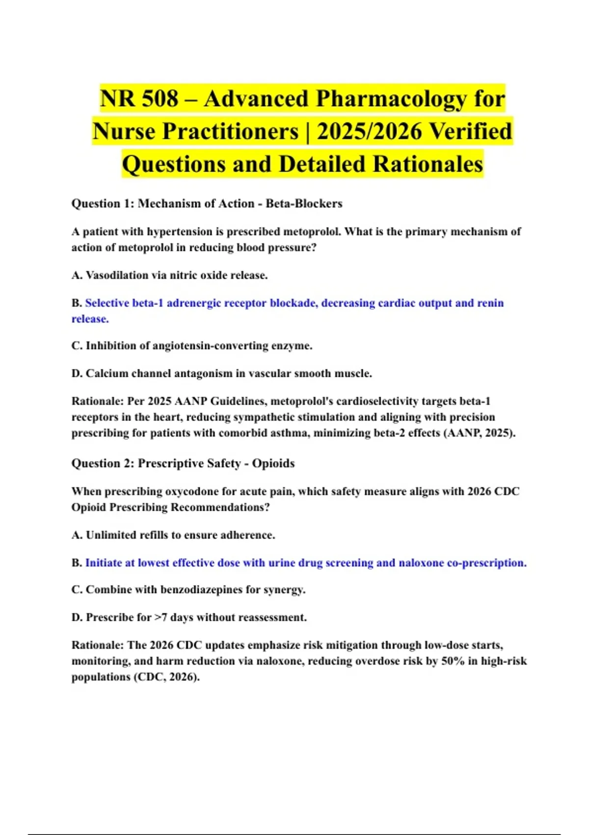 NR 508 – Advanced Pharmacology for Nurse Practitioners | 2025/2026 Verified Questions and Detailed Rationales