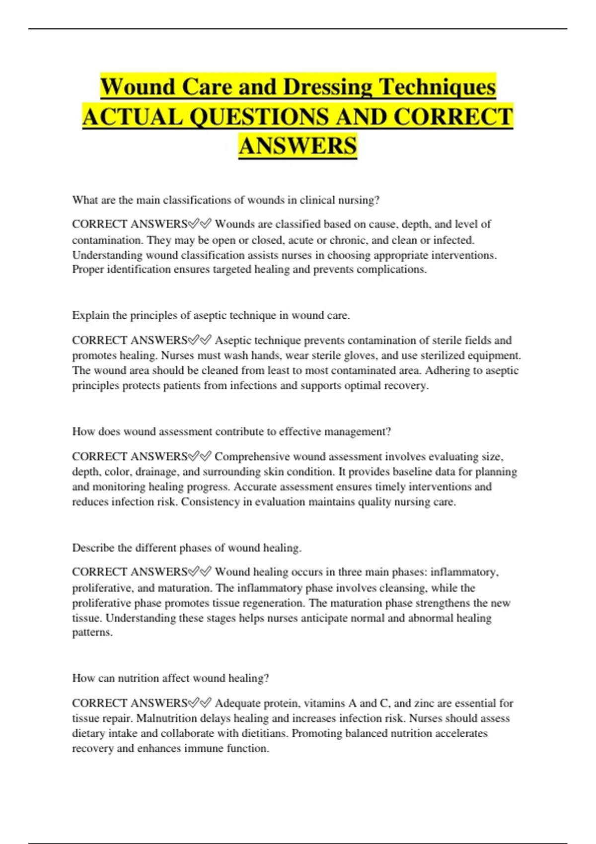 CORRECT ANSWERS✅✅ Comprehensive wound assessment involves evaluating size,