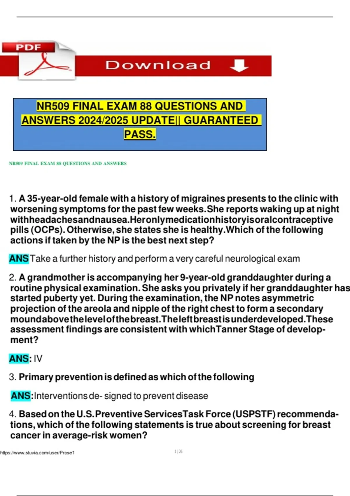 NR509 FINAL EXAM 88 QUESTIONS AND ANSWERS
