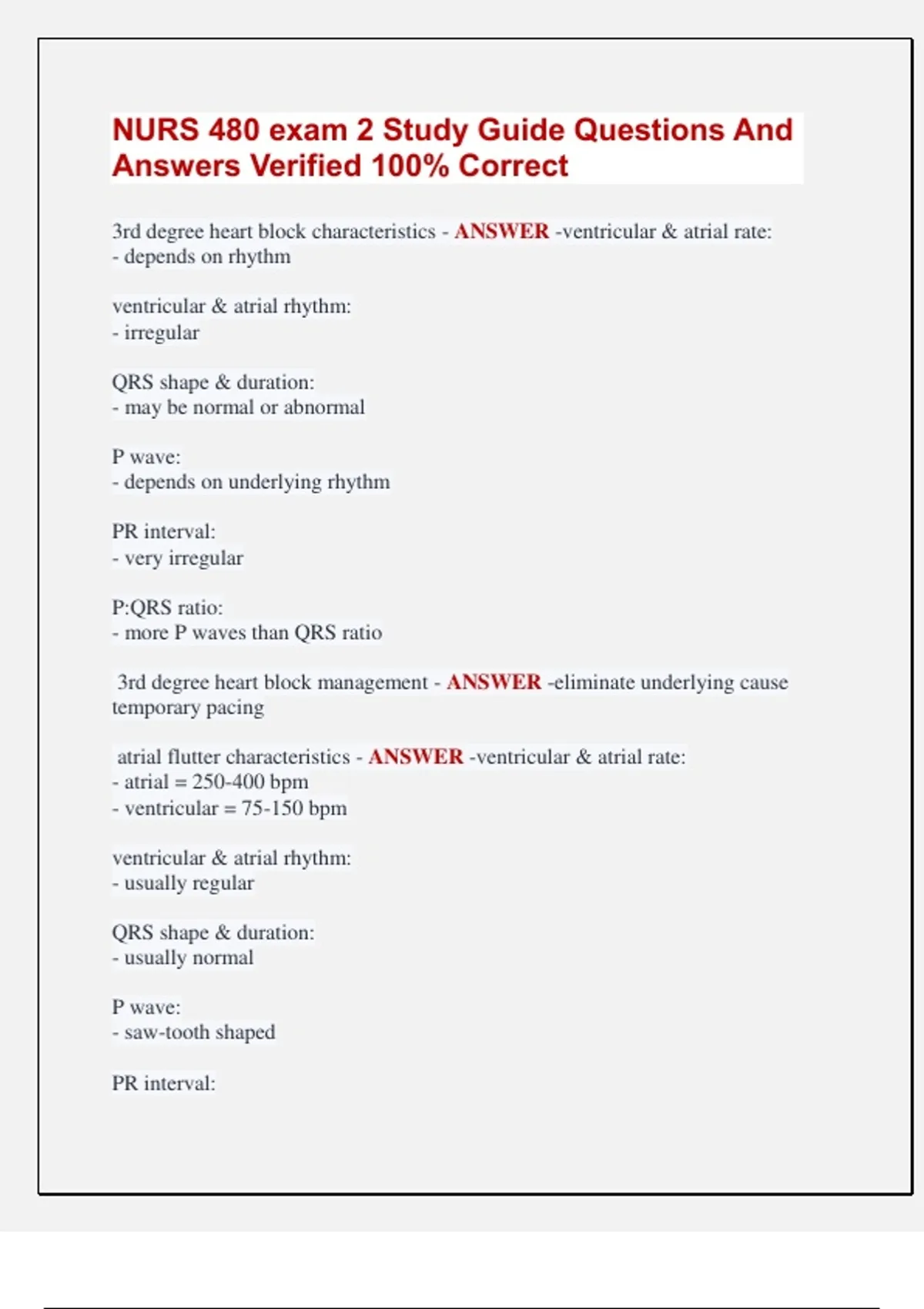 atrial flutter characteristics - ANSWER -ventricular & atrial rate: