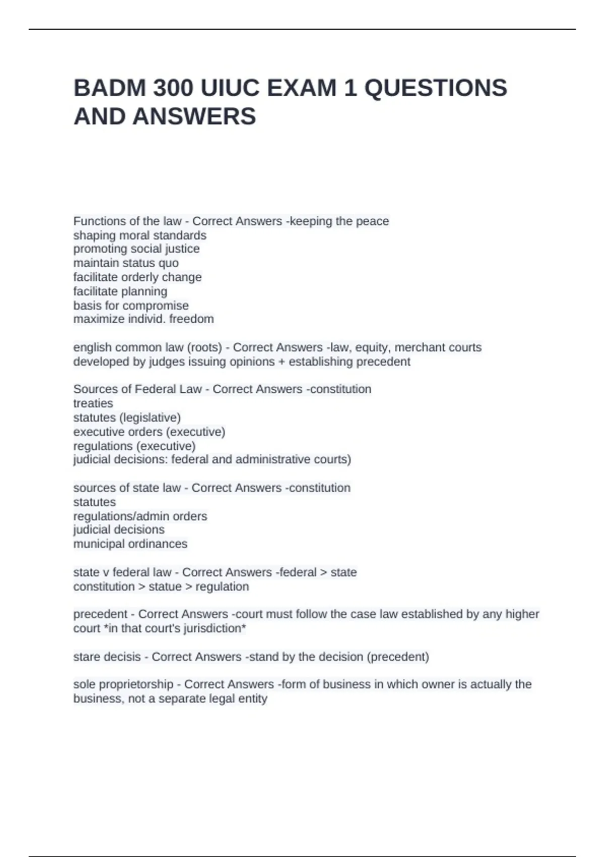 BADM 300 UIUC EXAM 1 QUESTIONS AND ANSWERS