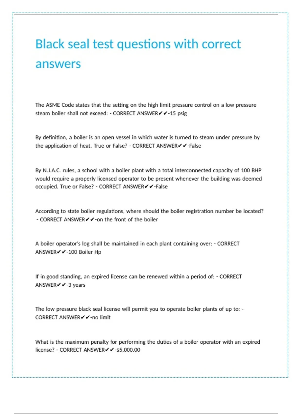 Black seal test questions with correct