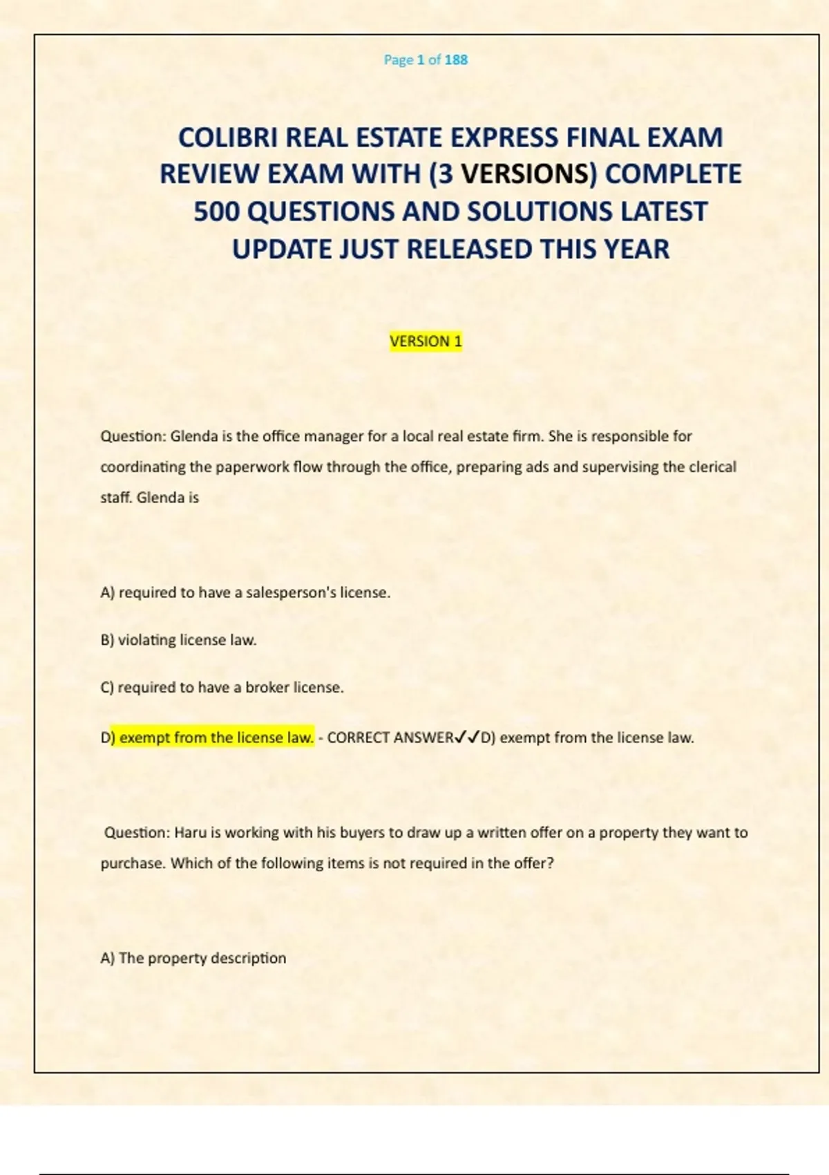 COLIBRI REAL ESTATE EXPRESS FINAL EXAM