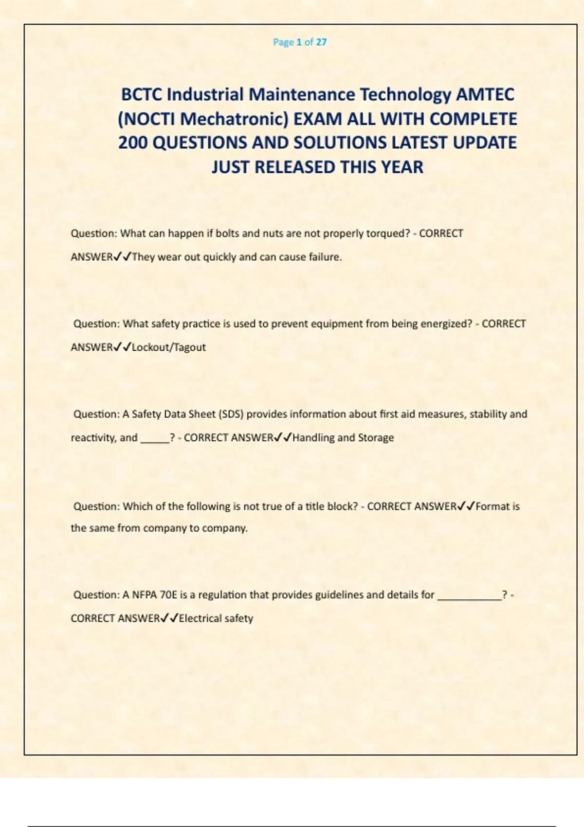 (NOCTI Mechatronic) EXAM ALL WITH COMPLETE
