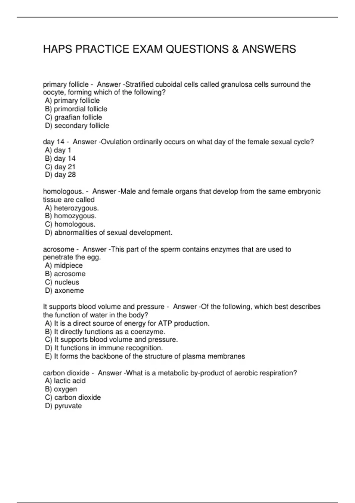 HAPS PRACTICE EXAM QUESTIONS & ANSWERS