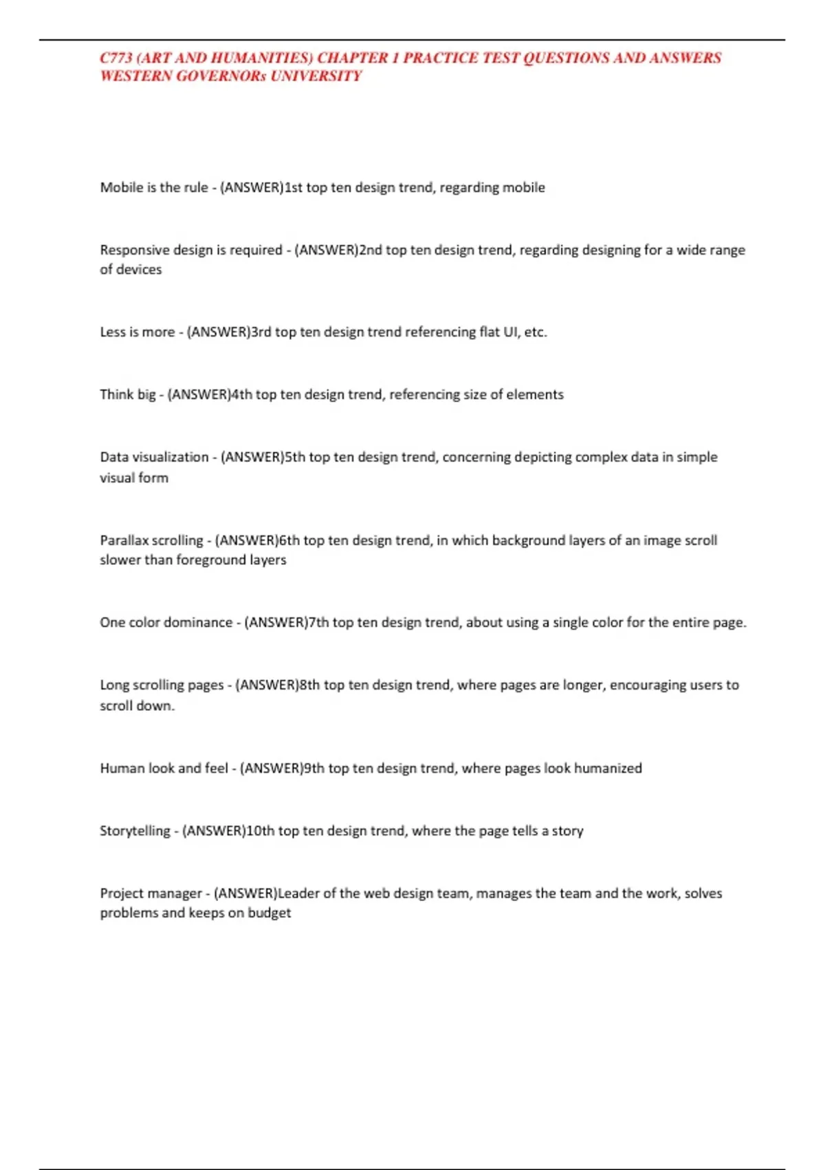 , C773 (ART AND HUMANITIES) CHAPTER 1 PRACTICE TEST QUESTIONS AND ANSWERS
