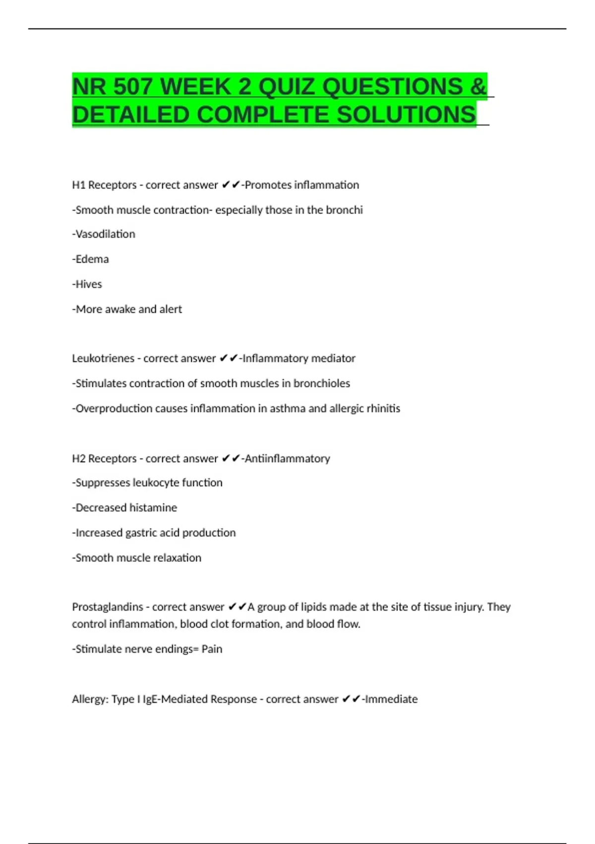 H1 Receptors - correct answer ✔✔-Promotes inflammation