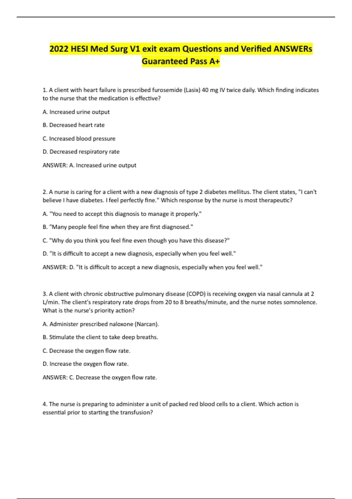 ANSWER: A. Increased urine output