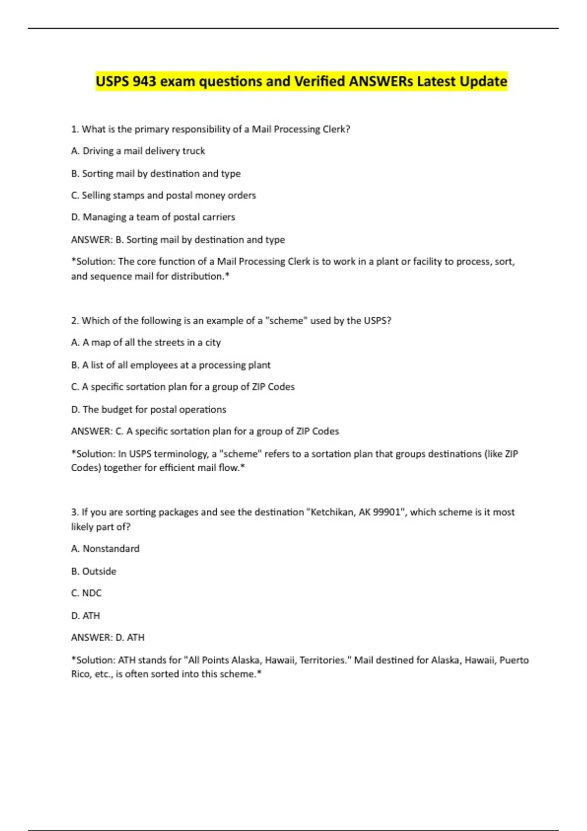 *Solution: In USPS terminology, a "scheme" refers to a sortation plan that groups destinations (like ZIP