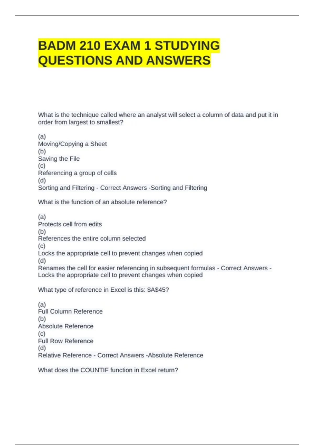 Sorting and Filtering - Correct Answers -Sorting and Filtering