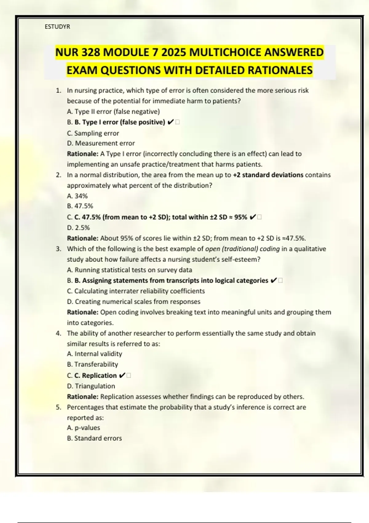 NUR 328 MODULE 7 2025 MULTICHOICE ANSWERED EXAM QUESTIONS WITH DETAILED RATIONALES