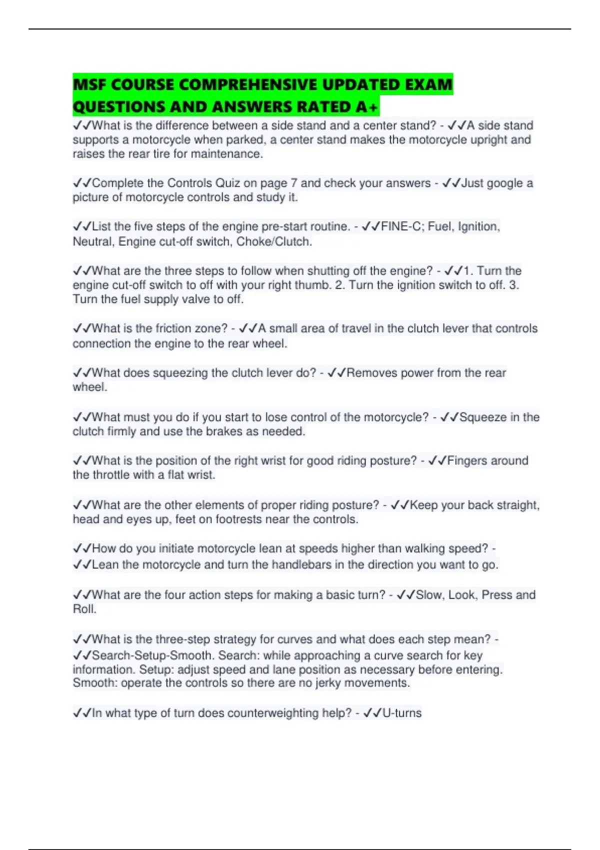MSF COURSE COMPREHENSIVE UPDATED EXAM QUESTIONS AND ANSWERS RATED A+