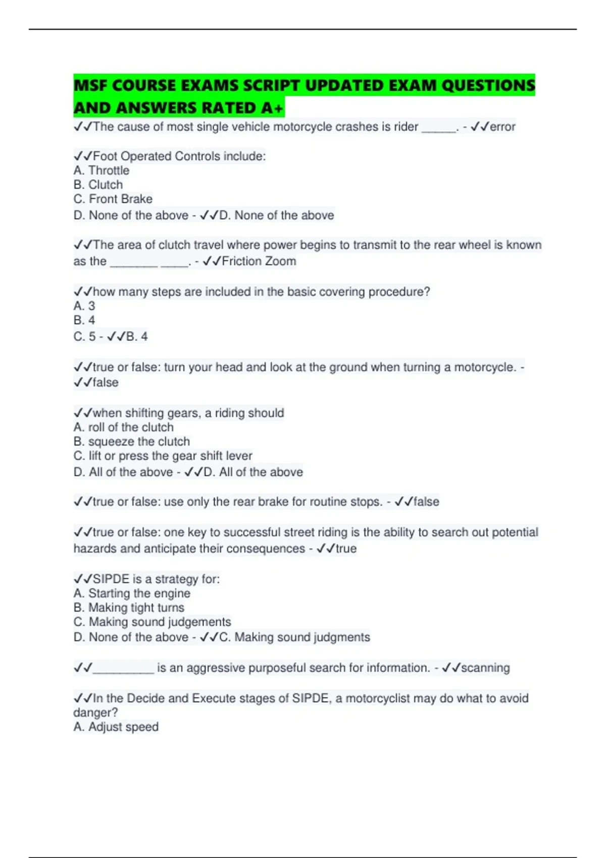 ✔✔The cause of most single vehicle motorcycle crashes is rider _____. - ✔✔error